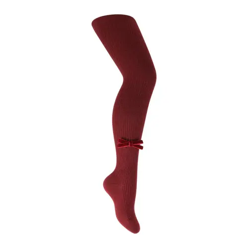 Zubii Burgundy Classic Velvet Bow Tights